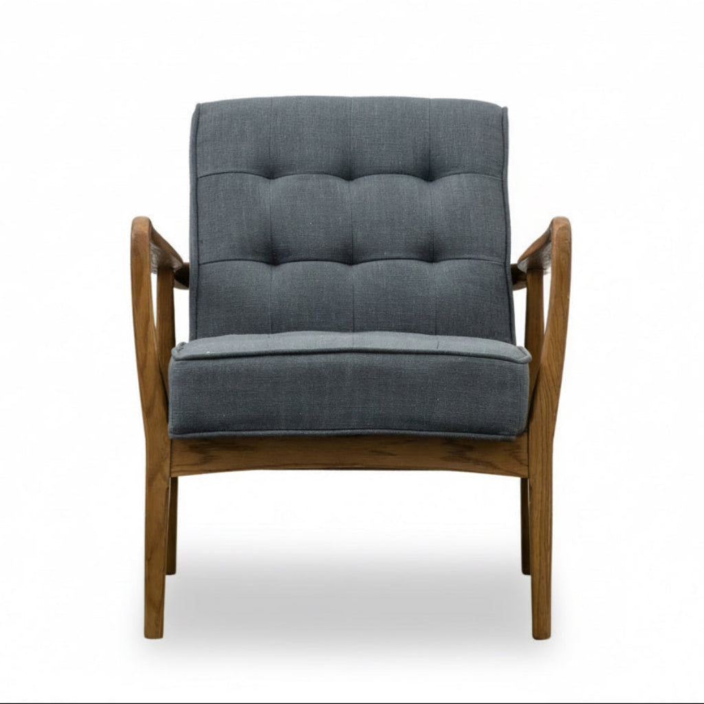 The Holmen and Husum Armchairs draw their inspiration from Mid-Century Scandinavian design. Iconic pieces that can make a statement in any living space. Made with a solid oak angled frame and upholstered in soft linen with deep pull detailing.