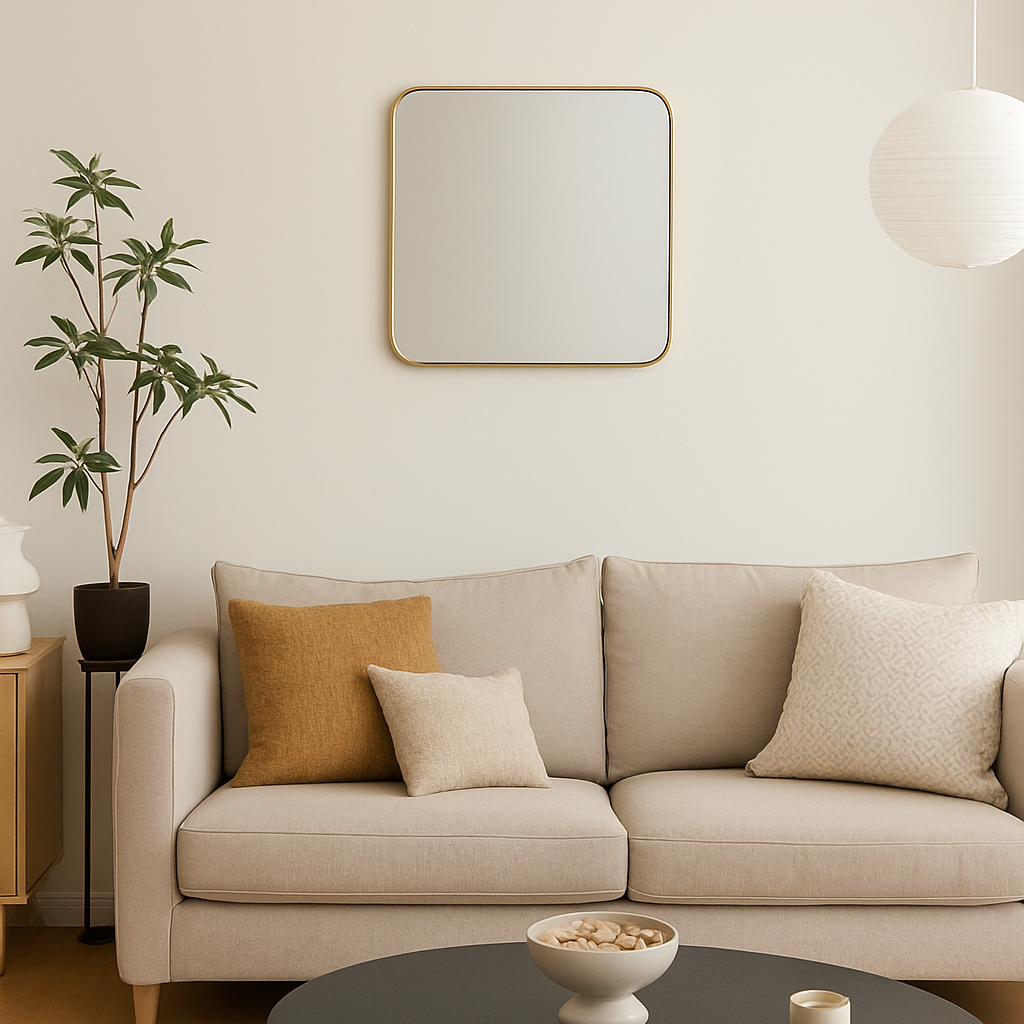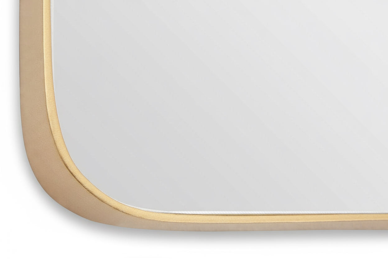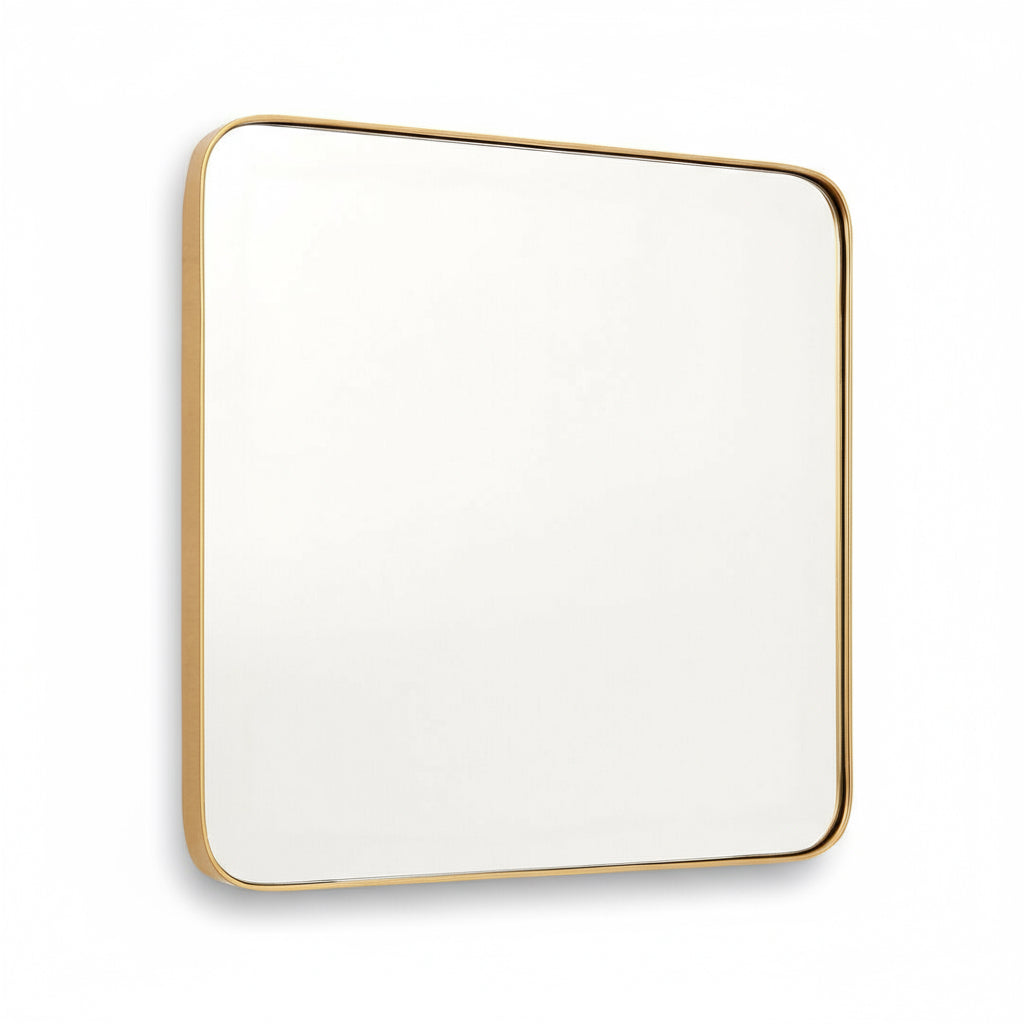 The Gold Finish Wall Mirror brings subtle elegance to your space with its slim, refined profile and softly rounded frame. The recessed mirrored surface adds depth and sophistication, while the golden finish lends a touch of understated glamour