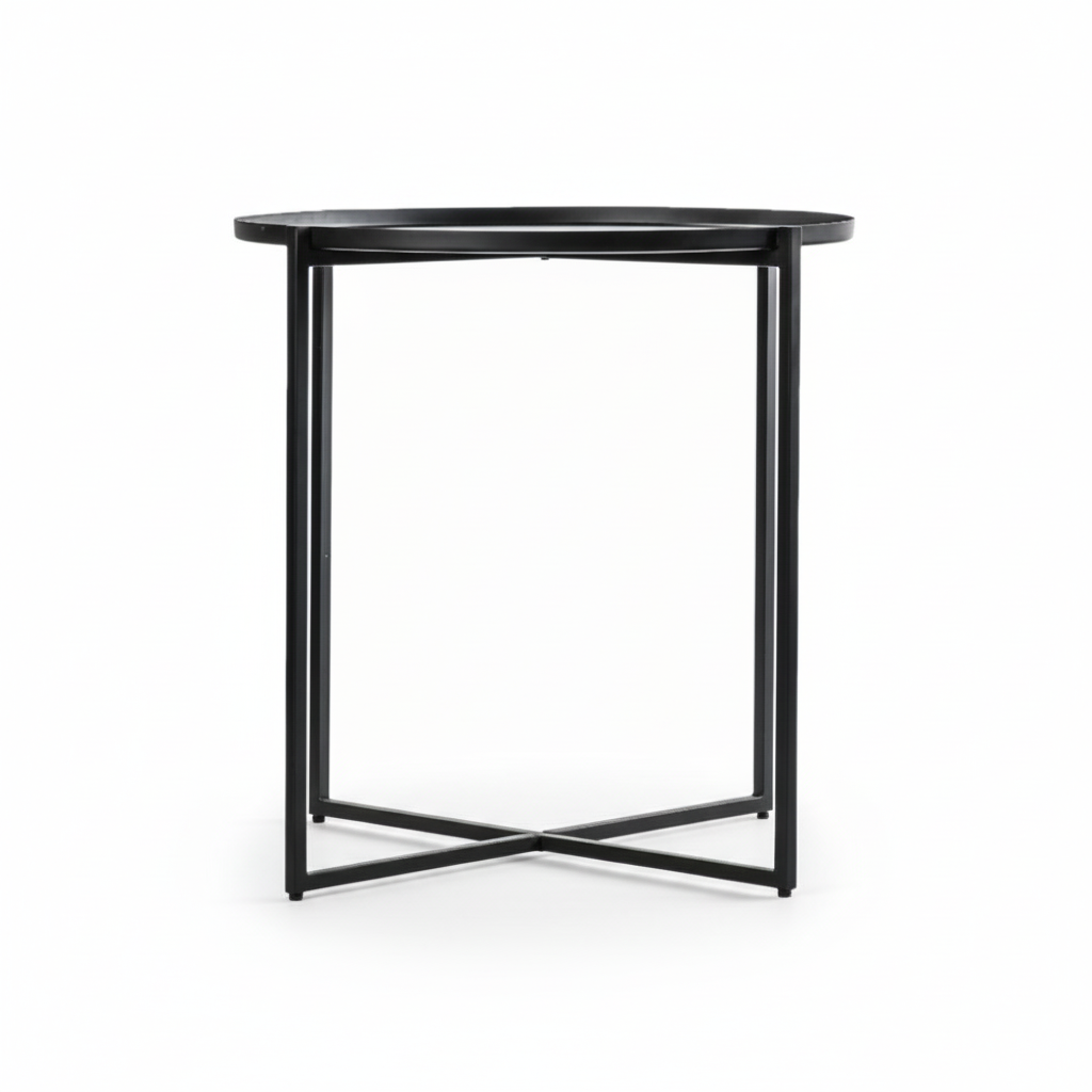 The Bindslev Side Table brings effortless style to any corner of the home. Crafted from sturdy metal with a smooth matte-black finish, this versatile piece blends seamlessly into contemporary, minimalist, and monochrome interiors. Its tray-style top offers both form and function—subtle raised edges create a clean, sculptural silhouette while keeping everything from candles to coffee cups neatly in place.