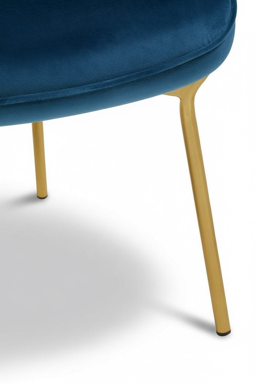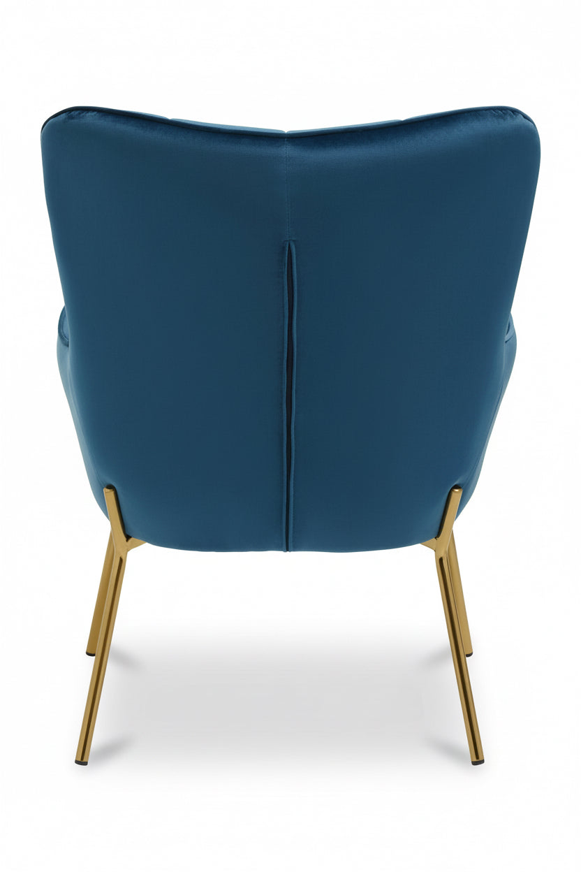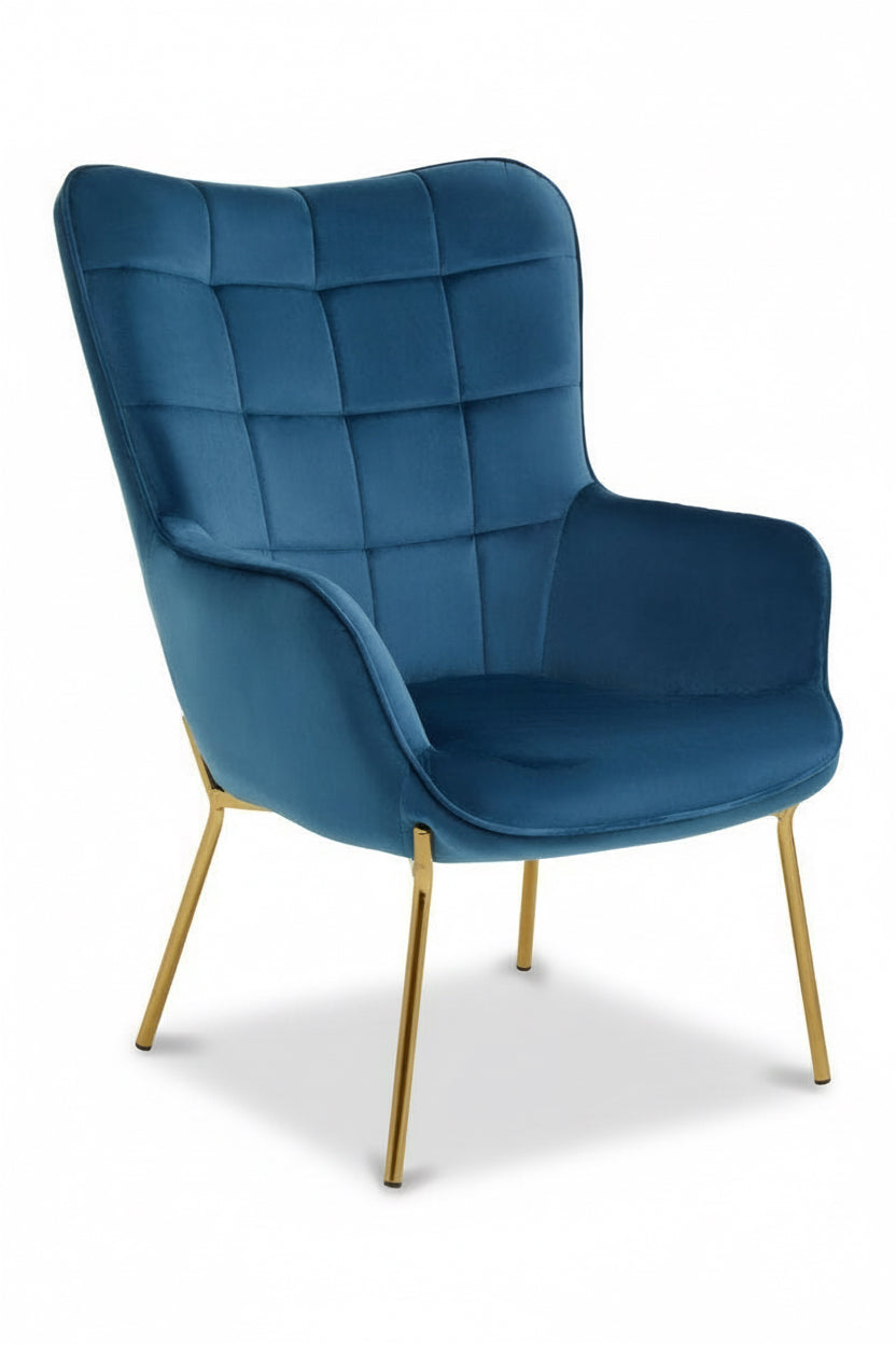 The Storvorde Lounge Chair brings together contemporary elegance and subtle opulence. Wrapped in soft blue velvet, its clean-lined stitching and square tufted backrest offer both style and support. The high-density foam seat ensures lasting comfort, while the sleek, tapered gold legs add a touch of modern glamour. A timeless statement piece that effortlessly elevates any living space.